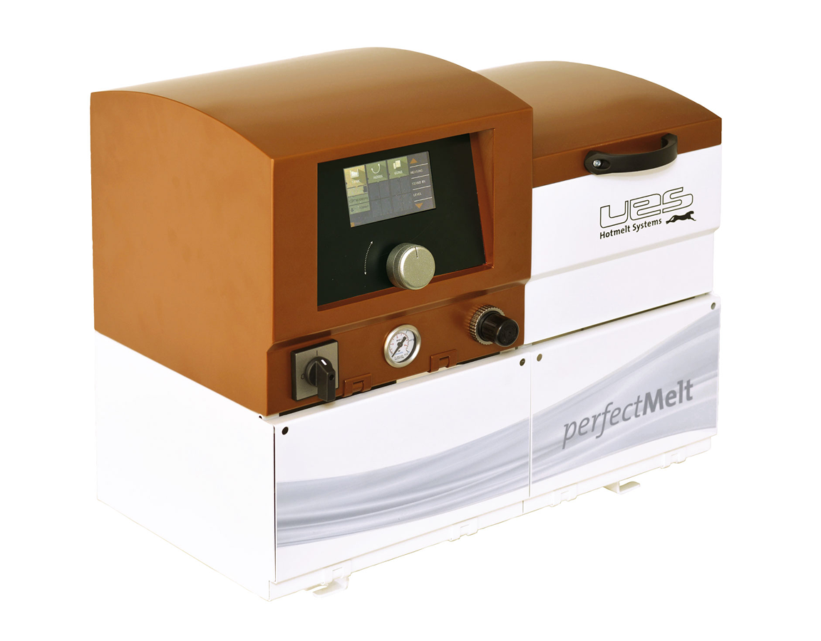 Systemy klejów topliwych UES oferowane są w modułowej konstrukcji. Dzięki różnym pojemnościom zbiorników od 4 kg do 100 kg oraz możliwości zaplanowania od 2 do 8 podłączeń węży, uniwersalne urządzenia stanowią praktyczne rozwiązanie dla niemal wszystkich zastosowań związanych z klejami topliwymi. Elektroniczne sterowanie z dużym ekranem dotykowym gwarantuje prostą obsługę systemu – oczywiście z wielojęzycznym menu. Dla optymalnej integracji dostępne są liczne opcje – od odłączanego wyświetlacza po dodatkową pompę. Zintegrowane styki sygnałowe i sterujące umożliwiają komunikację z centralnym systemem zarządzania produkcją. Urządzenia są kompatybilne pod względem podłączeń ze wszystkimi popularnymi producentami.