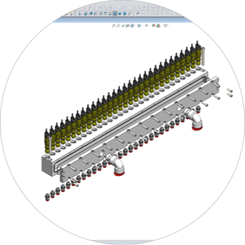 Projektujemy kompleksowe rozwiązania związane z automatyzacją procesów produkcyjnych –począwszy od układów pneumatycznych, zawansowanych systemów klejowych po kompletne stanowiska i linie zrobotyzowane. W pracach projektowych Dział Konstrukcyjny naszej firmy korzysta z oprogramowań takich jak SolidWorks, Eplan czy MotoSim, które pozwalają tworzyć realistyczne symulacje i optymalizować procesy produkcyjny jeszcze przed jego wdrożeniem. Dzięki temu klienci nasi otrzymują projekt dopracowany w każdym szczególe i gotowy do ewentualnej realizacji.